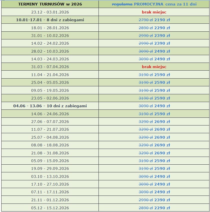 2026 – CENY i TERMINY – FIRST MINUTE (ważne do odwołania)