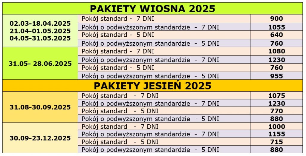 2025r – ceny i terminy