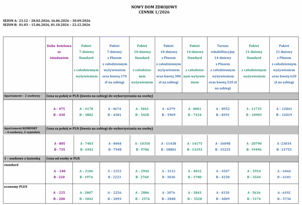 NOWY DOM ZDROJOWY – CENNIK 2025/2026r – od 23.12.2025