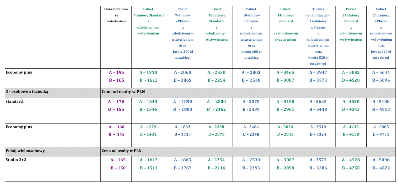 Ceny turnusów takie jak pakiety 14 dniowe z plusem.