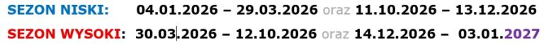 - doba hotelowa zaczyna się w niedzielę o godz. 15.00 a kończy się w kolejną niedzielę pobytu o godz. 11.00.