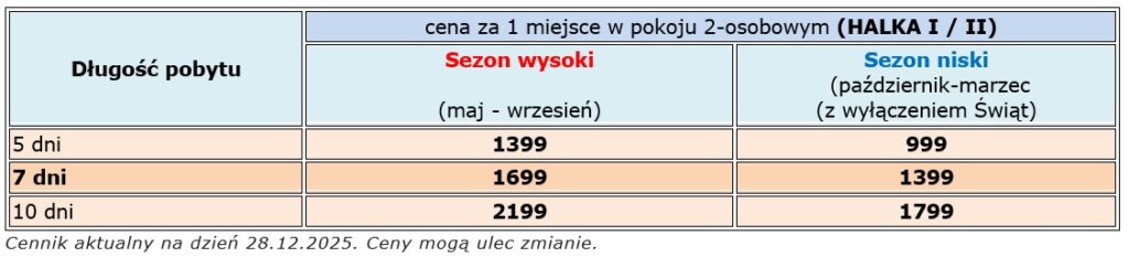 - Halka II (14 pokoi, 26 miejsc noclegowych w pokojach 1, 2 os.)