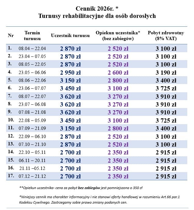 2026 r – Turnusy 14 dniowe. Tylko dla dorosłych.