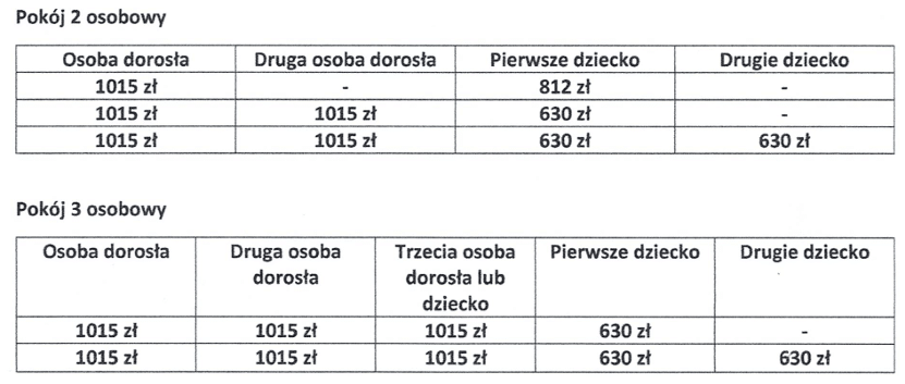 - wymiana ręczników i pościeli w trakcie turnusu jest odpłatna.