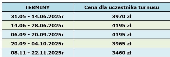 2025r – ceny i terminy