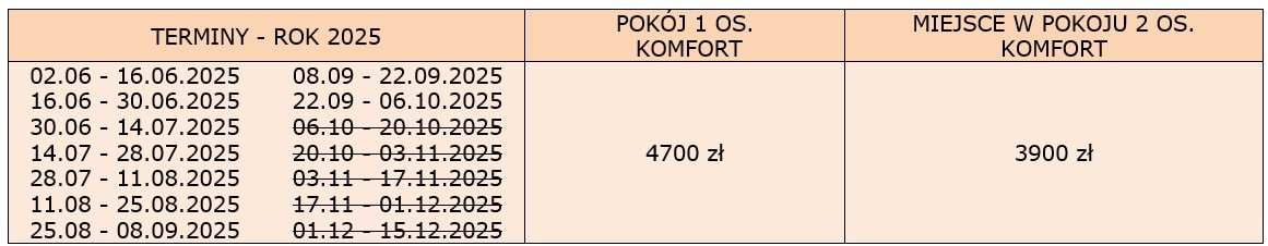 2025 cennik – turnusy rehabilitacyjne z możliwością wykorzystania