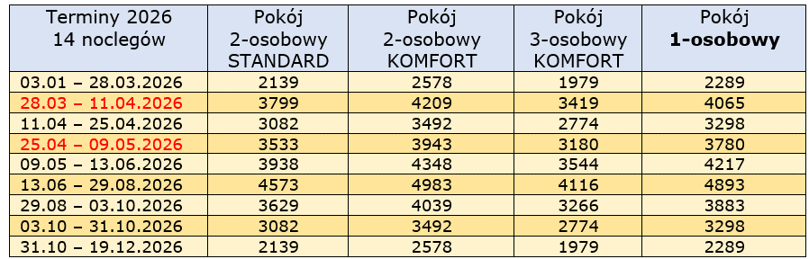 2026 r – TURNUSY LECZNICZE – minimum 5 noclegów: