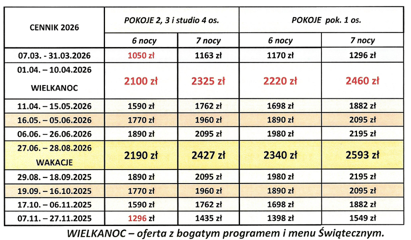 • W sezonie letnim zakwaterowanie od godz. 16:00.