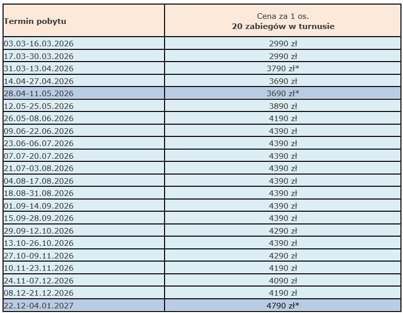 2026 cennik – turnusy rehabilitacyjne z możliwością wykorzystania