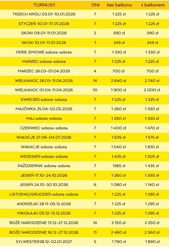 2026 r- WCZASY WYPOCZYNKOWE – (ceny z dnia 18.12.2025, mogą ulec zmianie)